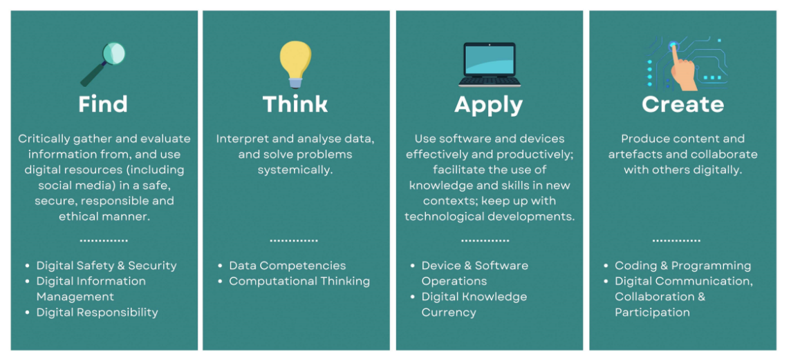 The Personal Learning Device (PLD) will be used in tandem with the national e-learning platform – the Singapore Student Learning Space (SLS) – as well as other educational technology to personalise and enhance students’ learning. This will also better enable students to acquire digital skills and apply these skills as they navigate an increasingly digitalised world. Students will also acquire digital literacy in the four components of MOE Digital Literacy Framework: